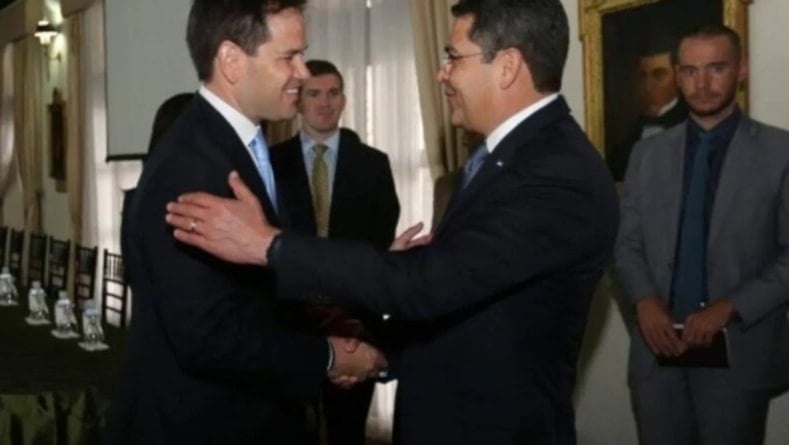El actual canciller estadounidense era un asiduo visitante del narcotraficante cuando este ejercía su segundo mandato, obtenido de manera fraudulenta pero con el aval de la Organización de Estados Americanos (OEA), dirigida entonces por el ultraderechista Luis Almagro. Durante una de sus visitas, Rubio felicitaba la «lucha contra las drogas» que libraba el gobierno de Hernández, mientras su hermano, Juan Antonio, inundaba con toneladas de drogas a Estados Unidos.